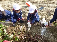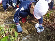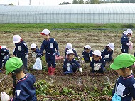 さすがは年長さん。自分でお芋の蔓のもとを掘り、大きなお芋を掘り出すことができました。