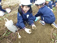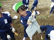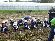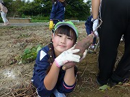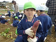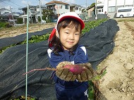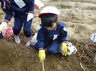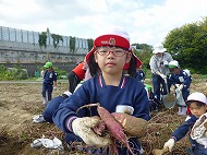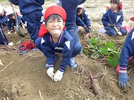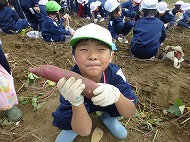 さすがは年長さん。自分でお芋の蔓のもとを掘り、大きなお芋を掘り出すことができました。