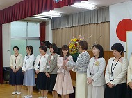 新入園児のみなさん、ご入園おめでとうございます。先生のあいさつで「幼稚園は楽しいことをたくさんします。休まないよう幼稚園に来てください。できることを一つでも増やしましょう。」というお話がありました。さあ、幼稚園で楽しいことをいっぱいしましょうね。