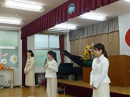 新入園児のみなさん、ご入園おめでとうございます。先生のあいさつで「幼稚園は楽しいことをたくさんします。休まないよう幼稚園に来てください。できることを一つでも増やしましょう。」というお話がありました。さあ、幼稚園で楽しいことをいっぱいしましょうね。