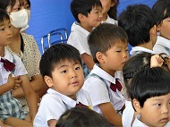 副園長先生から、「1学期、年少さん、年中さん、年長さん、どの学年もお友だちと仲良くしたり、行事などによく取り組めました。大きなマルです。明日から夏休み、いっぱい遊びましょう。お家の人のお話をよく聞きましょう。」というお話がありました。