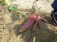 穏やかな天気の中、歩いてお芋畑に行きました。年少さんは先生方が“お手伝い”しながら掘り出しました。大きなお芋を掘り出すことができました。