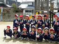 園からスタート地点へ出発。年少さん、年中さん、年長さんの順にスタートしました。ゴールは幼稚園の園庭です。どの園児も力いっぱい自分のペースで走りました。