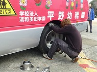 スクールバスを安全に運行するため、冬用タイヤに交換してもらいました。業者の方、運転手のみなさん、ありがとうございました。