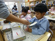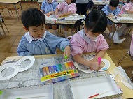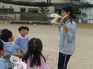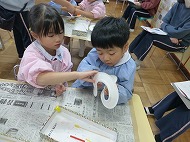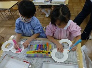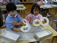 内容は、「『8の字風車』作りに取り組み、遊びを楽しむ」です。「絵画制作展を終え、自分たちで作ったもので遊ぶことを楽しむ姿が増えたので、制作から遊びに繋がる活動をさらに広めたいと考えた」、また「友だちと協力しながら作る経験をしたり、友だちの作品を互いに認め合うことで関係を深めるきっかけを作りたい」を設定理由にしました。