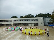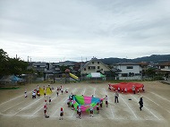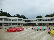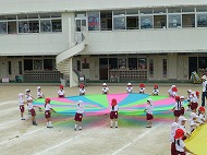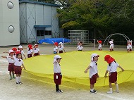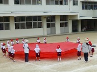 パラバルーンの練習を園庭で行いました。各クラスの位置の確認なども行いました。
