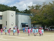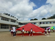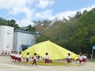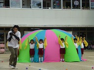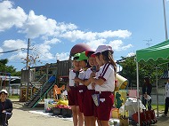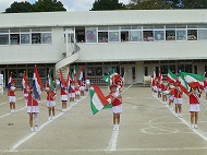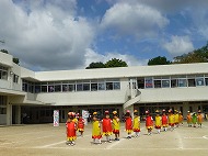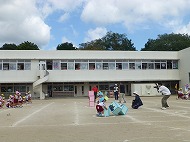 園庭の一部がぬかるんでいたので、グラウンド整備に少し時間をかけました。その後は予定通り進行しました。子どもたちは懸命に取り組み、よい総練習になりました。