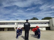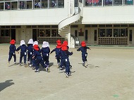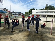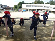 鉄棒、逆上がりを練習しています。なかなか難しそうです。サッカー、広い園庭で思いきりボールを追いかけます。
