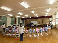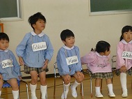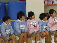 誕生月を英語で発音しその月生まれの人が手をあげたり、天気を英語で発音しました。「ロンドン橋落ちた」のゲームもしました。