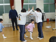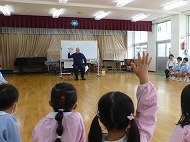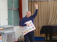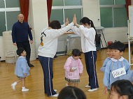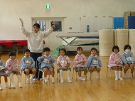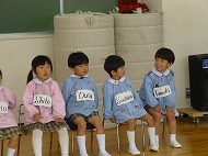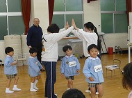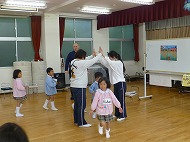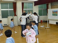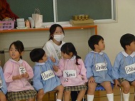誕生月を英語で発音しその月生まれの人が手をあげたり、天気を英語で発音しました。「ロンドン橋落ちた」のゲームもしました。