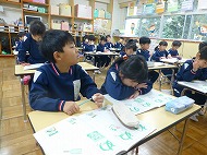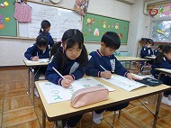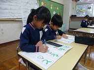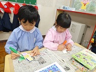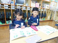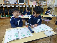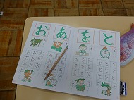 年長さん、書き方。ひらがなの練習をしました。