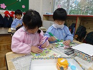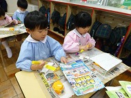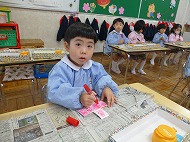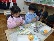 年中さん、制作。こま作りをしました。