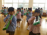 年長さん、鍵盤ハーモニカを指導していただきました。