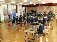 年長さん、「器楽合奏2026」に向け音楽の先生にポイントを丁寧に教えていただきました。