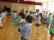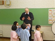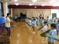年長さん、「器楽合奏2026」の練習です。音楽の先生に指導していただきました。
