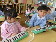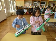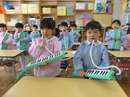 年中さん、鍵盤ハーモニカです。生活発表会の合奏曲を練習しています。