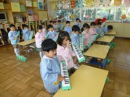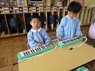 年中さん、鍵盤ハーモニカです。生活発表会の合奏曲を練習しています。