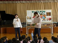 今日、2月3日は節分です。節分の日にちなみ、豆まきやひいらぎ・いわしのお頭のお話などがありました。みんなが健康で幸せに過ごせるよう願い、悪いものを追い出しましょう。