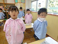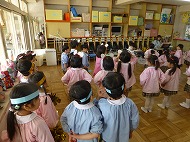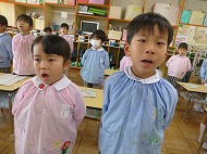 年長さん、2月のうたです。「怪獣のバラード」を練習しています。