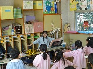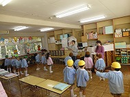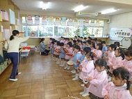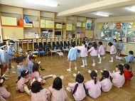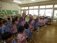 年少さん、合奏です。生活発表会の合奏曲「おすしのピクニック」を練習しています。