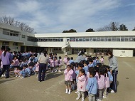 万一火災が発生した場合、園児たちの命と安全を守り確保するための訓練です。全員、園庭に無事避難しました。先生たちは消火器を扱う訓練も行いました。