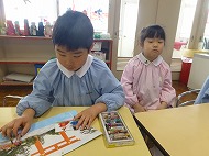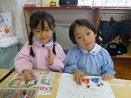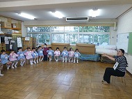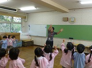 年少さん、英語です。曲に合わせ体を動かし楽しく英語にふれることができました。