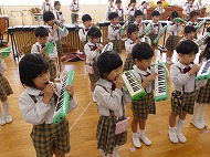 年中、年少さん、合奏練習です。生活発表会で演奏します。少しずつ仕上がっています。