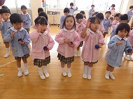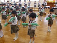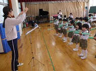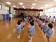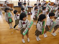 年中、年少さん、合奏練習です。生活発表会で演奏します。少しずつ仕上がっています。