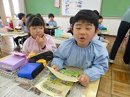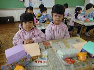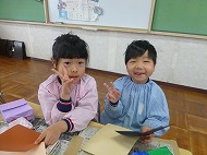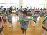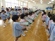 年中さん、合奏です。生活発表会の合奏曲「喜びの歌」を練習しています。