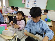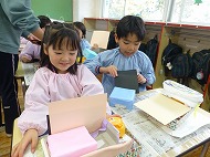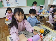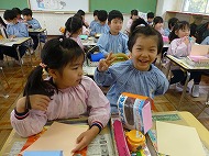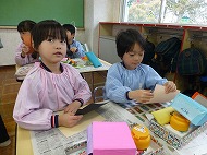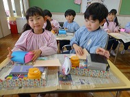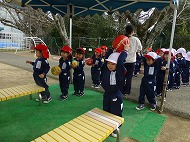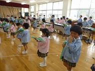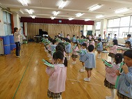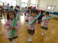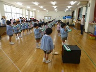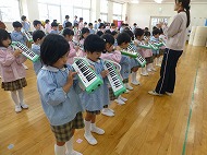 年中さん、合奏です。生活発表会の合奏曲「喜びの歌」を練習しています。