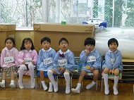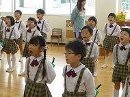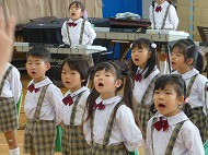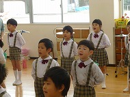 年長さん、うたです。生活発表会で歌う「ありがとうの輪」を音楽の先生に指導していただきました。