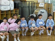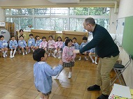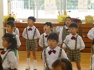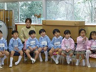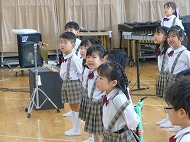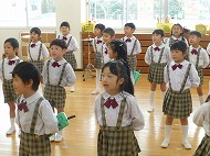 年長さん、うたです。生活発表会で歌う「ありがとうの輪」を音楽の先生に指導していただきました。