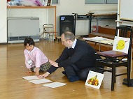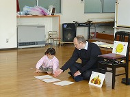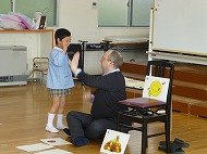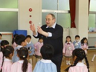本園では、年中から英語教育を取り入れています。(年少は3学期に数回実施しています。)少しでも英語に親しみを持ってもらおうと、10年前から始めました。