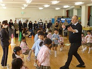 子どもたちはこの英語が大好きでいつも楽しみにしています。英語の先生のレッスンは終始笑顔が絶えません。本日、そのようすを参観していただきました。保護者のみなさま、ご来園ありがとうございました。