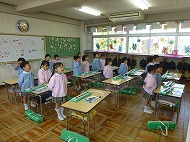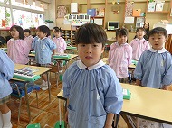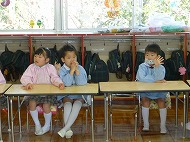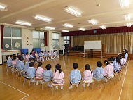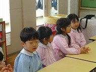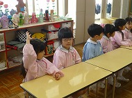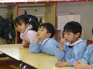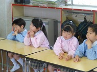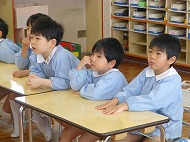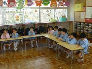 年長さん、話し合いをしていました。テーマは「お礼」のようです。