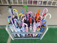朝から雨模様。かさの出番です。