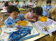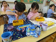 年少さん、制作と給食、つづきです。
