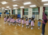 “体育あそびの練習”では、集団で動いたり、並んだり、楽しい体操もしました。