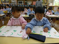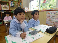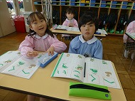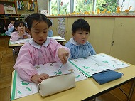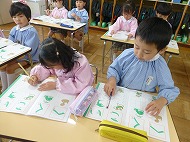 年長さん、かきかた、園庭あそびです。
