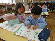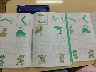 ひらがなの練習をしました。「い」「こ」などです。これからも少しずつ練習します。