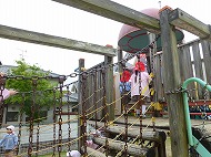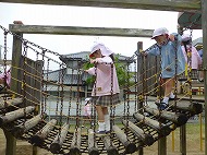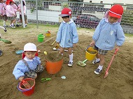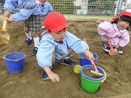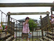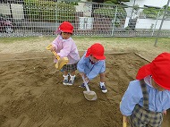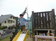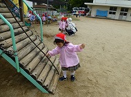 園庭あそびでは、大型遊具・すべり台・砂場・ブランコなどで、年少さんといっしょに遊びました。