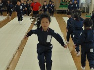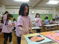 年長さん、今年度初めての体育あそび。制作で絵を描きました。