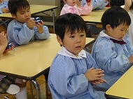 年少さん、音楽(リズム)あそび、体育あそび、絵本にシールを貼りました。